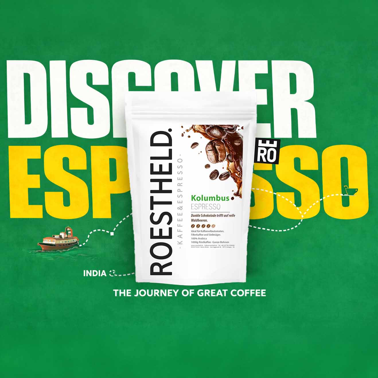 Unsere Identität. Geschmack, der unverwechselbar ist. Vielfältige Aromen, die sich beim Aufbrühen verströmen. Ein echter Roestheld vom Aroma über den Körper bis hin zur Crema. Geschmack besonders von dunklen Beeren über feine Süße bis hin zu Kakao.